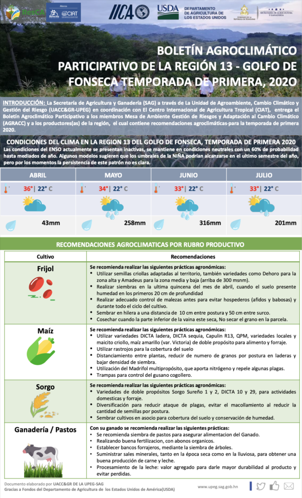 Boletín Agroclimático Participativo de la región 13 – Golfo de Fonseca, temporada de primera, 2020