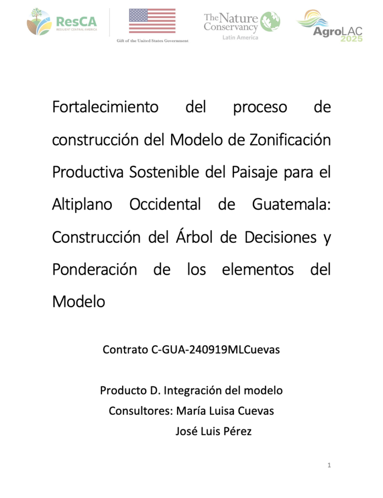 Fortalecimiento del proceso de construcción del Modelo de Zonificación Productiva Sostenible del Paisaje para el Altiplano Occidental de Guatemala: Construcción del Árbol de Decisiones y Ponderación de los elementos del Modelo