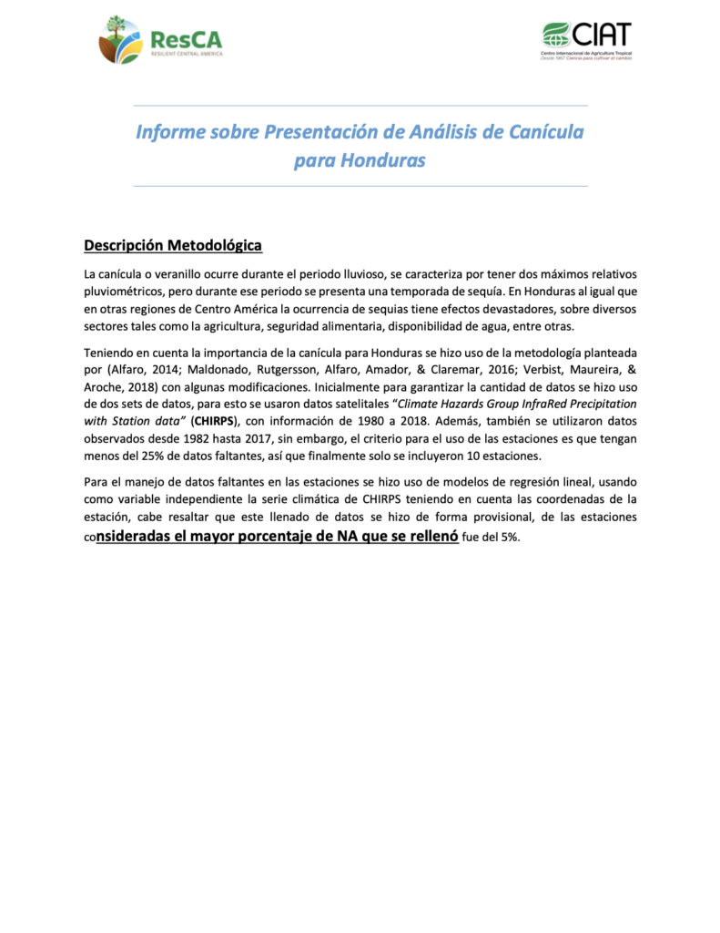 Informe sobre Presentació de Análisis de Canícula para Honduras