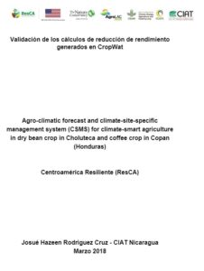 Validación de los cálculos de reducció de rendimiento generados en CropWat: Agro-climatic forecas and climate-site.specific management system (CSMS) for climate-smart agriculture in dry bean crop in Choluteca and coffee crop in Copan (Honduras) Leer más