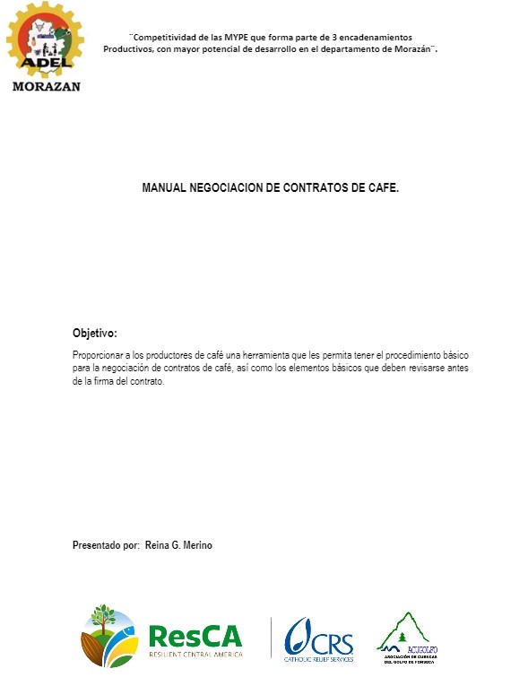 Este manual tiene como objetivo proporcionar a los productores de café una herramienta que les permita tener el procedimiento básico para la negociación de contratos de café, así como los elementos básicos que deben revisarse antes de la firma del contrato.