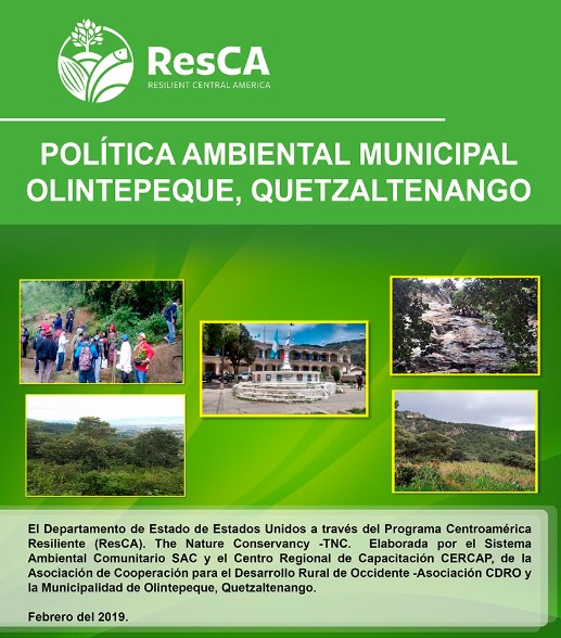 El presente documento denominado “Política Ambiental Municipal de Olintepeque, Quetzaltenango” contiene información relacionada a los problemas ambientales que se viven en el municipio, dicho documento fue elaborada de forma participativa con representantes de: Oficinas técnicas municipales, Mesa Técnica de medio ambiente y autoridades comunitarias, quienes contribuyeron a la identificación de problemas ambientales e identificación de líneas estratégicas para establecer acciones de mitigación. El documento contiene acciones a desarrollar en el corto, mediano y largo plazo su énfasis es enumerar el desarrollo de una serie de acciones y responsables directos para su implementación, así como un proceso adecuado de promoción del contenido de n las políticas para que su implementación sea efectivo y no rompa con la unidad y armonía de convivencia de los habitantes del municipio.
